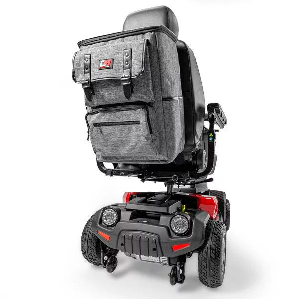 The Designer Backrest Bag is specifically engineered to work with most scooters and powerchairs available today.